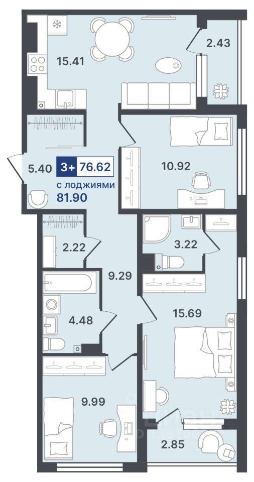 продам 3-к, 10 микрорайон, 438 970 000 ₽