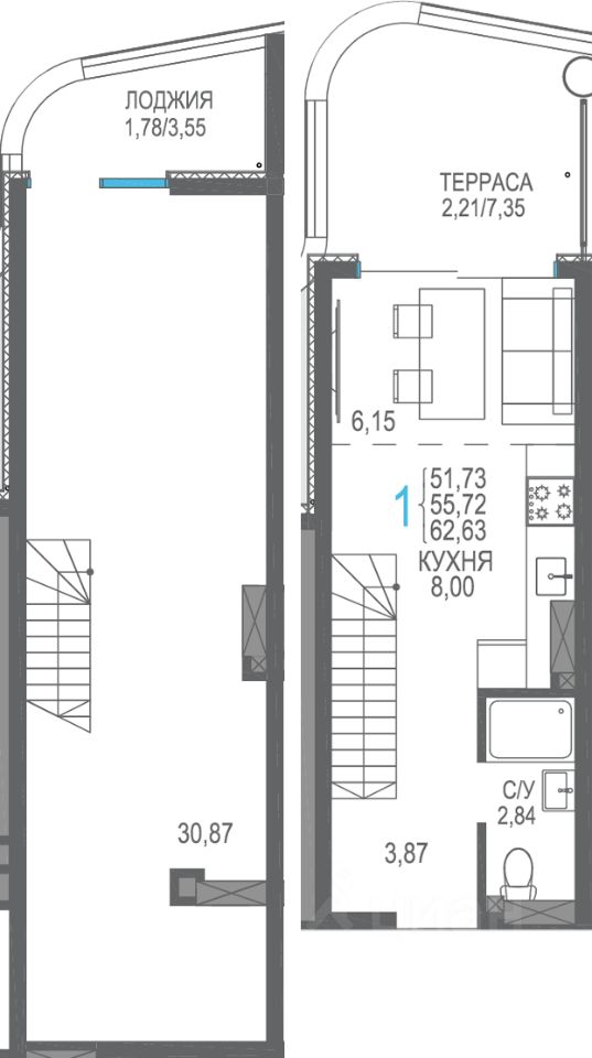 Общая площадь62,63 м2