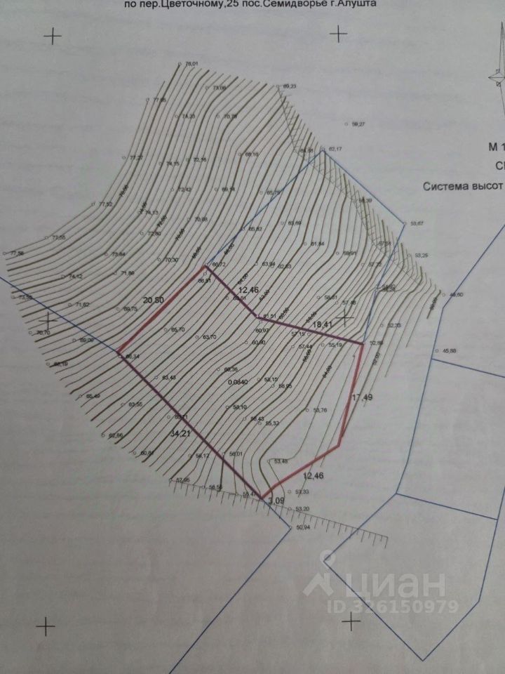 участок с видом на море на умеренном склоне, недалеко от моря (около 350 м.), перепад высот на фото
