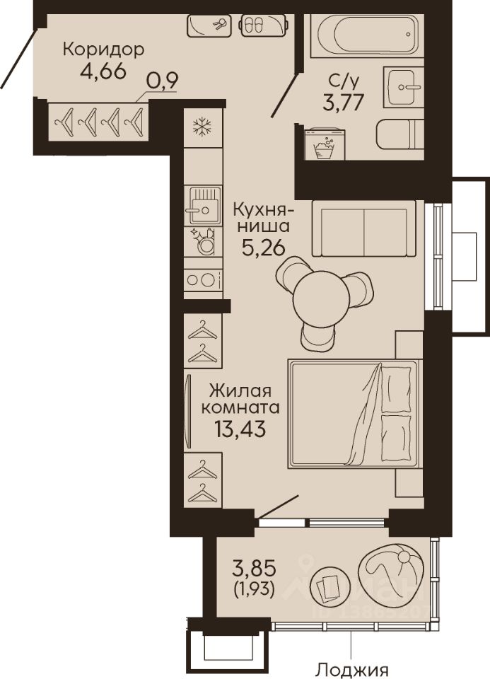 продам 1-к, Челюскинцев, 13а/2 стр.7 961 000 ₽
