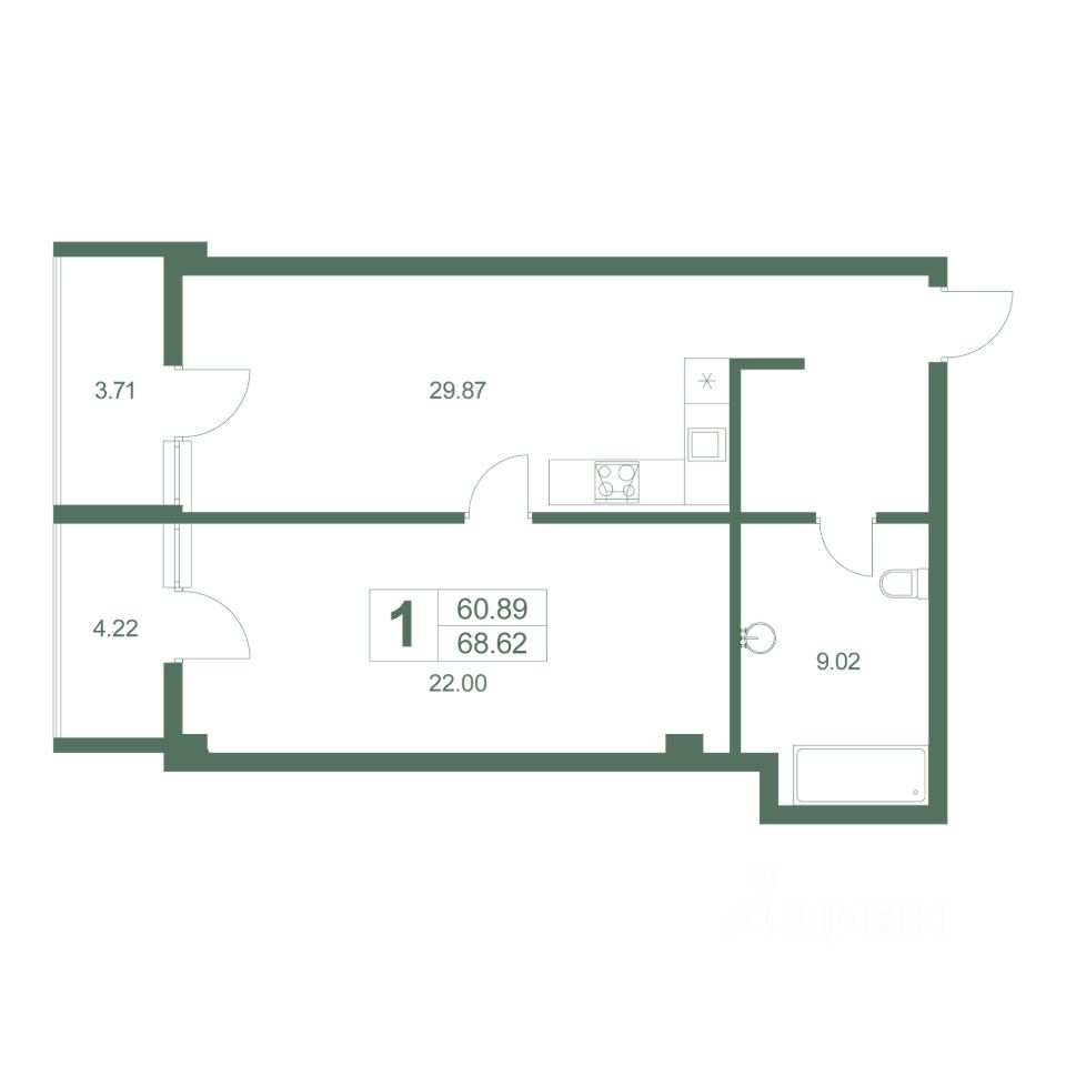 Общая площадь71,4 м2