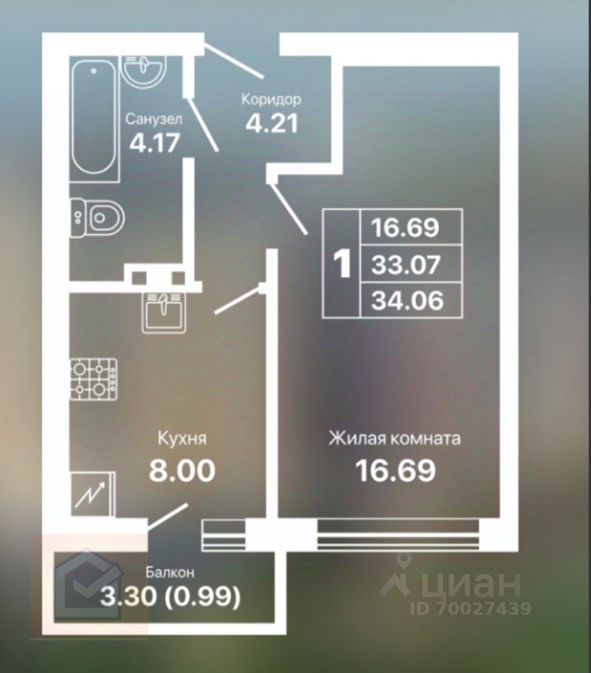 Общая площадь: 34,06 м кв Этаж: 5/9 Современная планировка. Горячая и холодная вода, подключение к электричеству. Лифт.