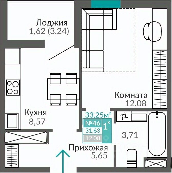 Общая площадь31,63 м2
