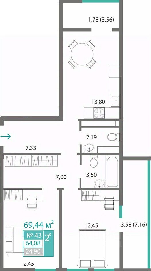 Продаётся 2-комнатная квартира в строящемся доме (3 этап (Секция Б7.1)), срок сдачи: I-кв. 2027, общей площадью 64.08 кв.м., на 7 этаже. Новый жилой квартал ''Горизонты'' от застройщика ''Монолит'' расположен по адресу Республика Крым, Симферополь, микрорайон Крымская роза.