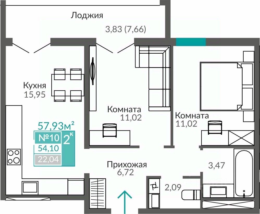 Общая площадь54,1 м2