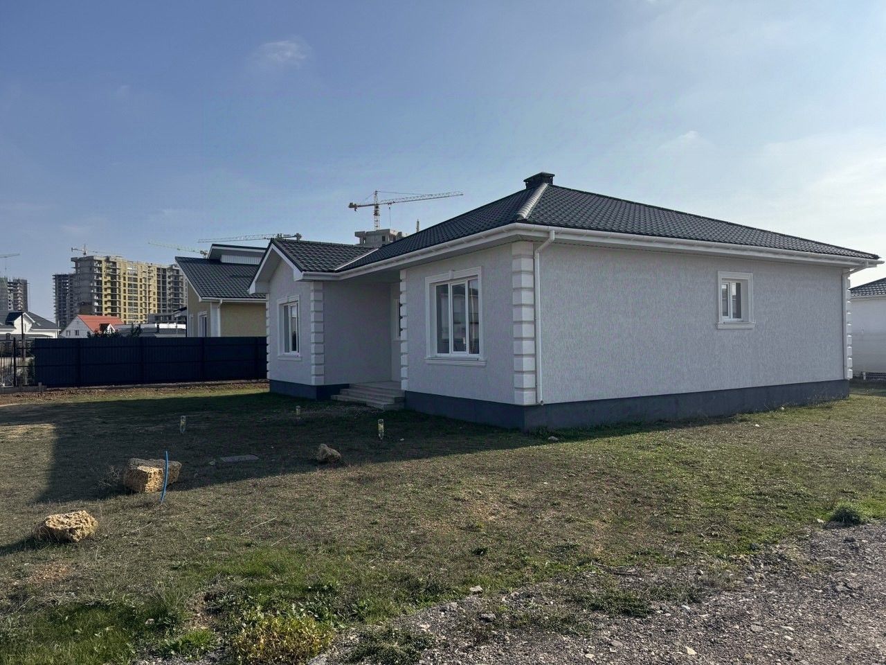 Арт. 114075164 Продам дом новой 2021года постройки в Уютном (пригород Евпатории). Документы РФ. Расположен на земельном участке 6 соток (назначение земли ИЖС). Одноэтажный, общей площадью 133,19 м2, три отдельные спальни 15,96 м2, 15,20 м2, 15,20 м2, кухня-гостиная 34,68 м2, санузел совмещенный 6,86 м2, котельная со вторым санузлом 3,43 м2, прихожая 5,40 м2, две террасы 13,24 и 11,24 м2, коридор 11,88 м2 высота потолков, 3 метра. Коммуникации электричество (три фазы 15кВт), вода (городская), канализация (септик), улица освещена светодиодными фонарями. Строение - фундамент ленточный глубиной 70-90 см., до скалы, армирован 12-ой арматурой. Цоколь ж/б, колонны - ж/б, стены газобетон толщиной 300мм, смонтирован на клей, утеплён минеральной ватой 50 мм., наружная отделка фасада декоративная штукатурка, окна теплый трехслойный мультифункциональный стеклопакет, кровля - метало черепица, цвет графит, матовая. При строительстве использовались качественные материалы. Рядом Центр Спорта Эволюция (спортивные сооружения, парковая территория детские игровые площадки школа серфинга (летом) экскурсионные программы анимация для детей зал для игр в бильярд паркинг на территории лечебное отделение собственный пляж киноконцертный зал). Отличный развивающийся район рядом с городом 2 км от Евпатории. До самого лучшего пляжа (Аква) 1,5 км. Отменная смесь степного теплого и сухого воздуха с влажным морским, благотворно влияет на здоровье.