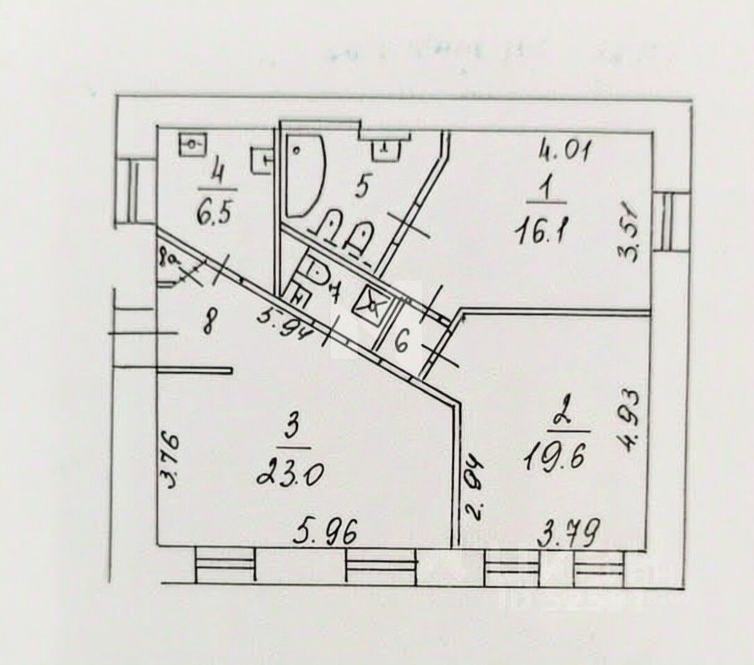 Отсутствие несущих стен открывает возможности для перепланировки, что позволит реализовать любые дизайнерские идеи. Текущая планировка узаконена, имеется два стояка для удобства.