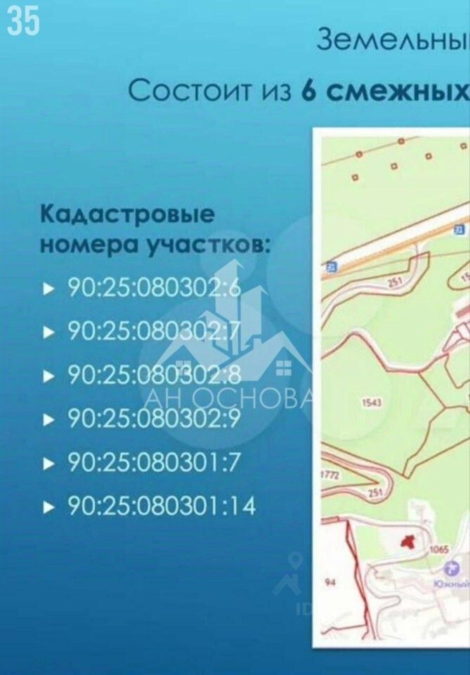 Объект 35. Продается земельный участок для строительства гостиничного комплекса с уникальным местоположением на Южном берегу Крымского полуострова! Климатические и природные условия исцеляют душу и тело. Участок для строительства гостиничного бизнеса в первой от 100 метровой линии к морю, пляжу. Великолепие природы в этом месте, оживляет творческую силу. Участок находится в окружении 100 летних деревьев, местами можжевельник, Крымский дуб, птицы, горы, бриз морской волны, чистейшее море.Объект состоит из 6 участков. Общая площадь объекта 1.84 Га. 4 участка (гостиничное обслуживание 1.4 Га, один из кадастровых номеров: 90:25:080302:7)+2 участок (ИЖС 45 соток(0.45Га)). На участке проведена канализация городская, вода ,свет на 380Вт и 1000Вт. (10 000кВ). На участке 4 хороших заезда. 3-4 площадки ровные для строительства многоэтажного гостиничного комплекса, остальные площадки имеют уклон с полянками более менее ровными.К пляжу ведет лестница, ступени, можно продумать отдельный спуск, или запустить канатную дорогу (есть проект).Пляжная зона: можно взять в аренду, состоит из двух частей протяженностью 700-800 метров поселковый пляж и 800-900 метров дикий пляж.Документы РФ. Собственность.