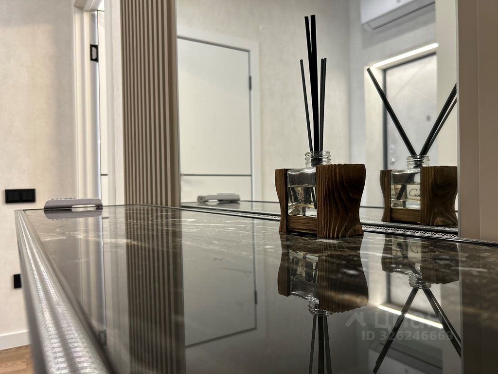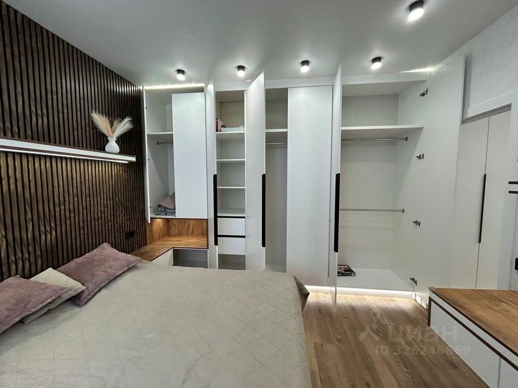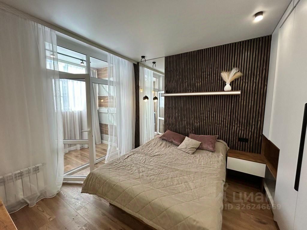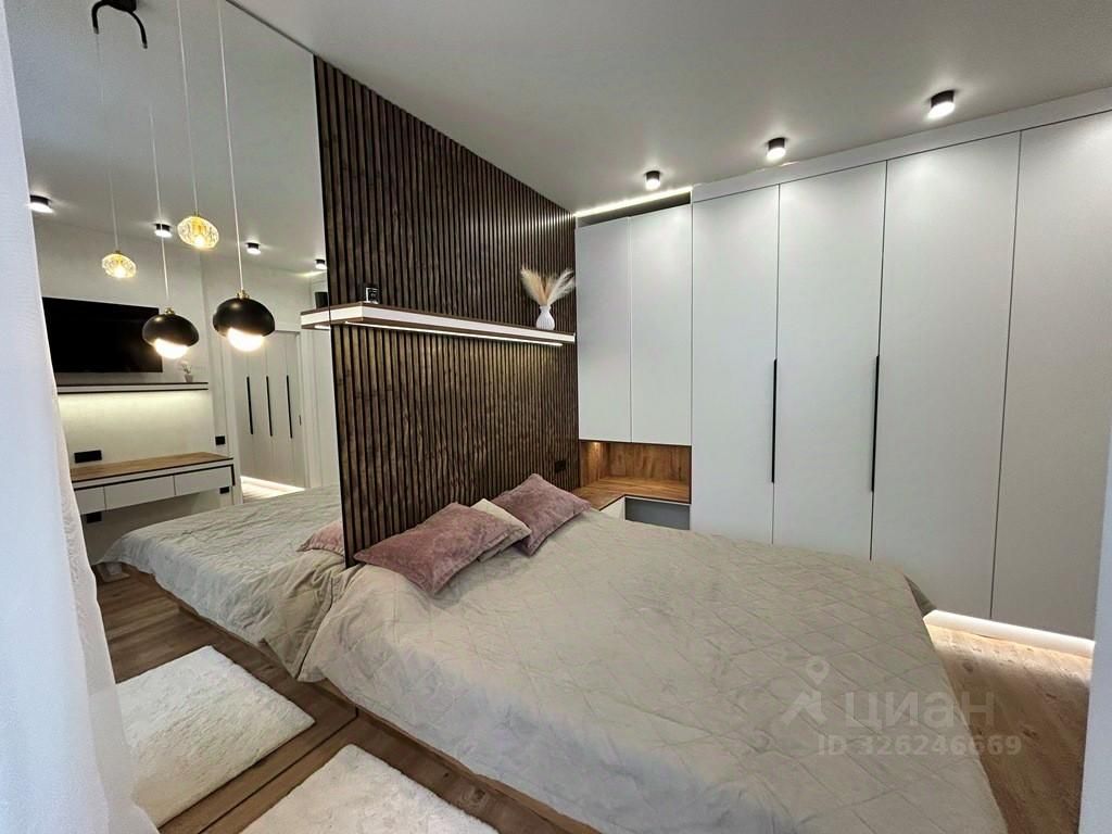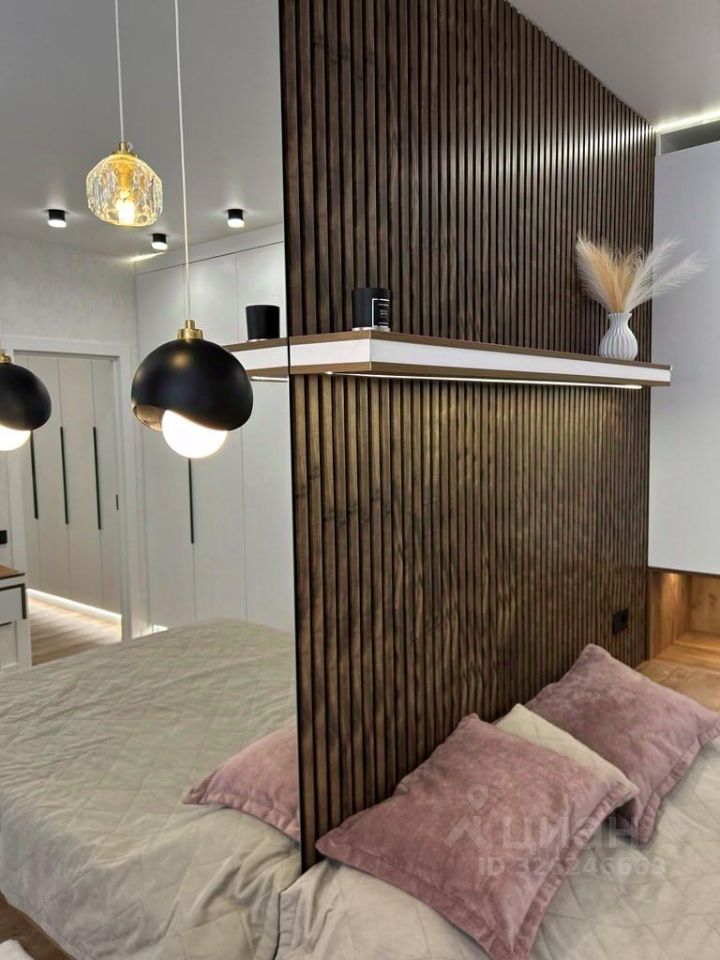 В продаже красивая квартира с уникальным ремонтом Спальня и кухня-гостиная с диваном