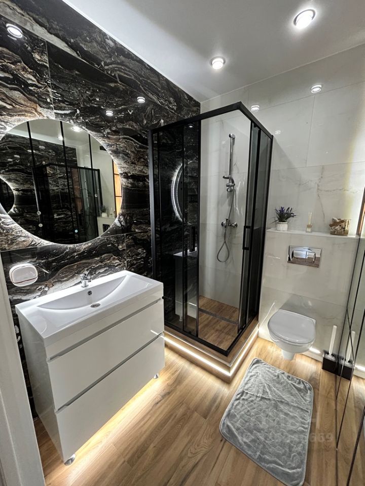 Квартира укомплектована всей необходимой мебелью и бытовой техникой Двуспальная кровать, красивое освещение Инсталляция Встроенные шкафы - много мест для хранения Индивидуальное отопление: 2х контурный котел на отопление и горячую воду