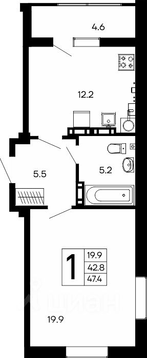 Общая площадь47,4 м2