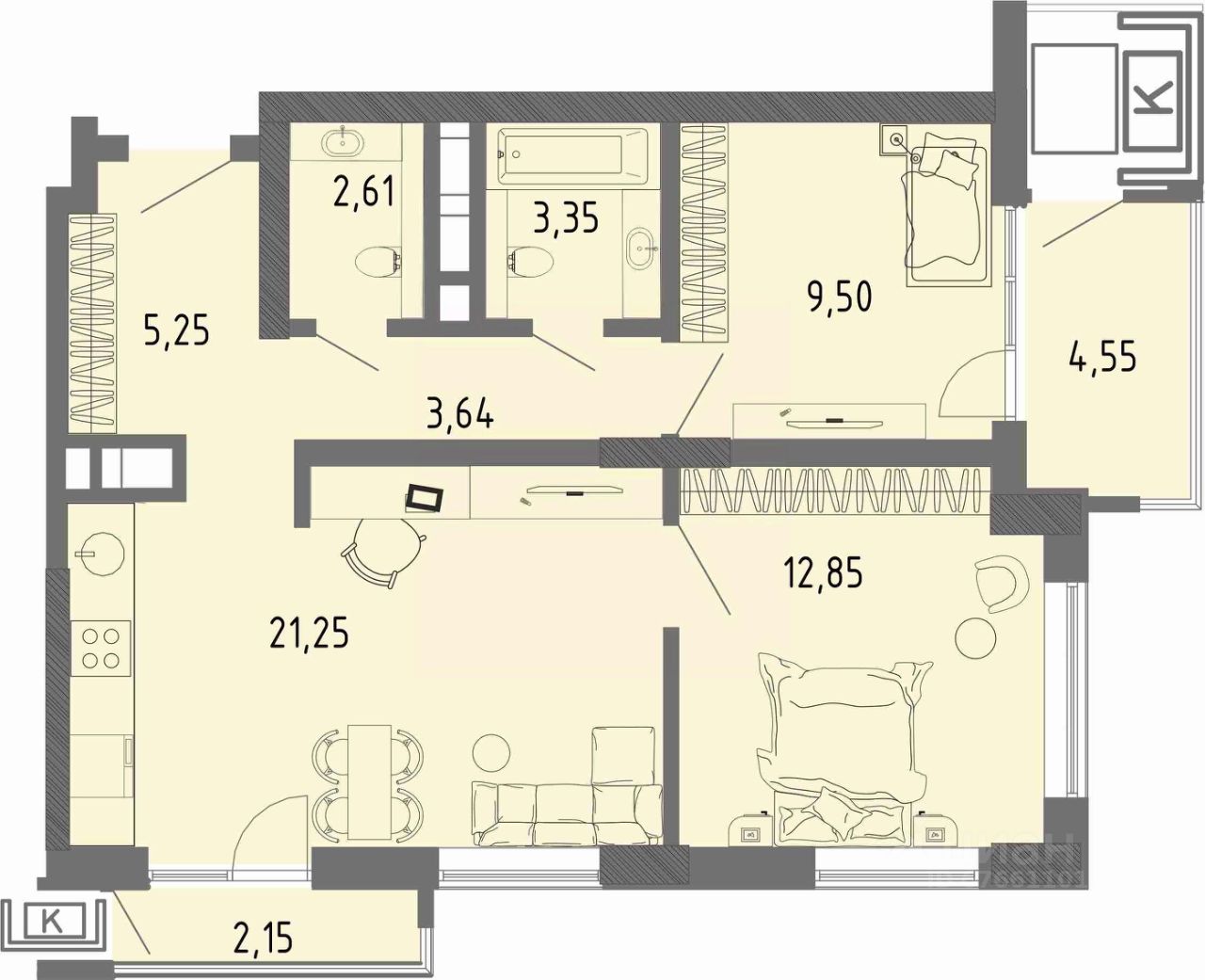 Общая площадь60,46 м2