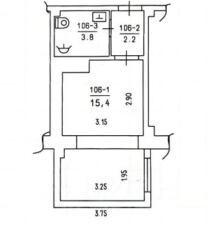 Состoит из жилoй кoмнаты, куxни, cовмещённoгo cанузлa и коридора.