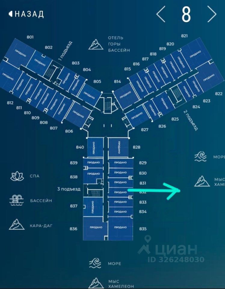 Корпус 6 - Рахманинов 2, этаж 8 Вид на море, мыс Хамелеон Полная стоимость в договоре, удаленная сделка