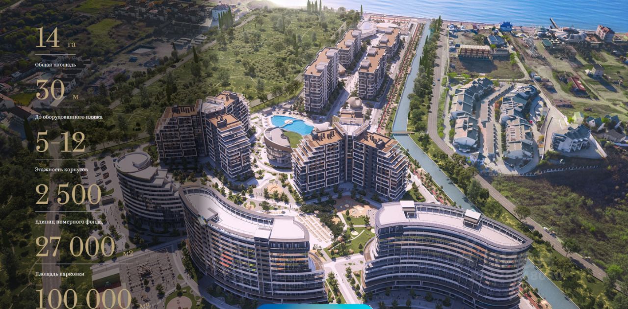 3. Широкий спектор инфраструктуры: - Круглогодичный, подогреваемый Бассейн (1250 м2) - 5 точек питания (Бар на пляже, шведская линия, ресторан, коворкинг, детская комната) - Амфитеатр на 650 посадочных мест - Спортивная площадка - Детская комната и площадка - Оборудованный пляж