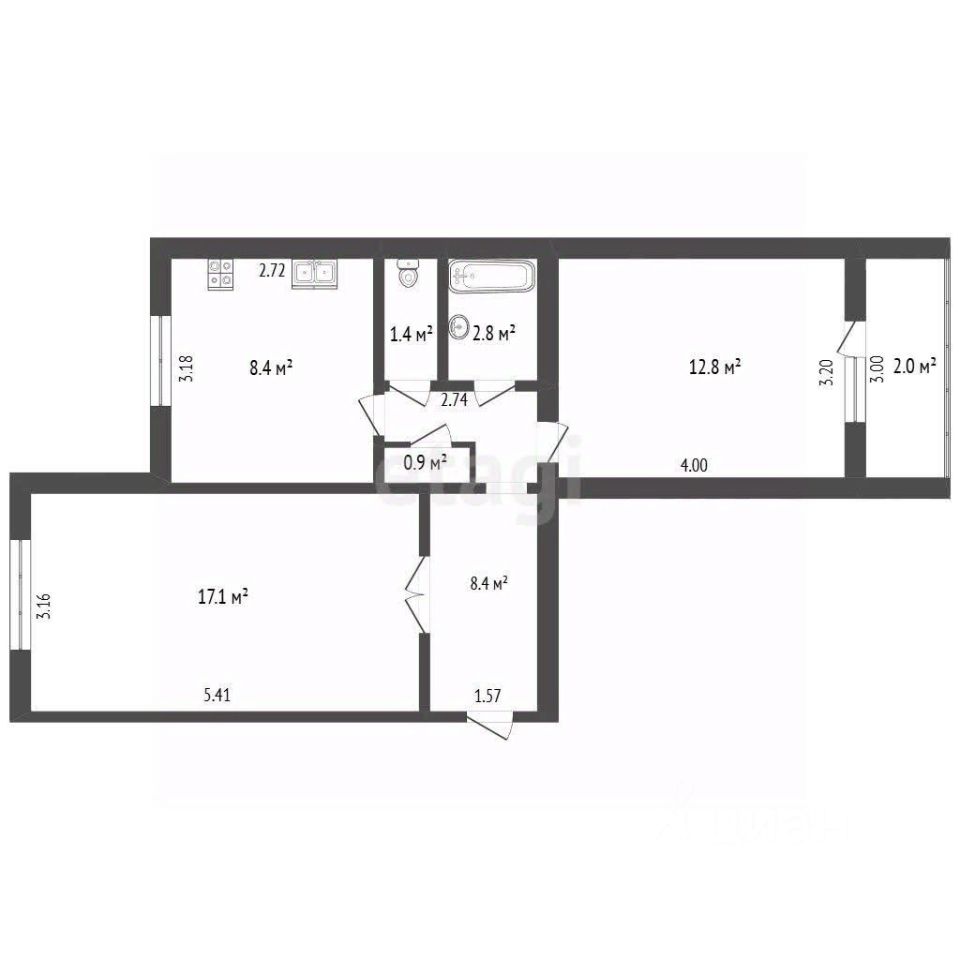 Очень удачная планировка. Окна на две стороны. Идеальный этаж. Две просторные раздельные комнаты 17,1 м² и 12,8 м². Большая кухня 8,4 м² и коридор 8,4 м². Огромная лоджия. Раздельный санузел. Имеется кладовая. Квартира в жилом состоянии, но требует чтобы новый собственник сделал качественный, современный ремонт по своему вкусу. Огромный бонус для покупателя: при покупке квартиры гараж в гск ''старт'' первый ряд в подарок! Рядом есть вся необходимая инфраструктура для комфортного круглогодичного проживания. Всё в шаговой доступности.