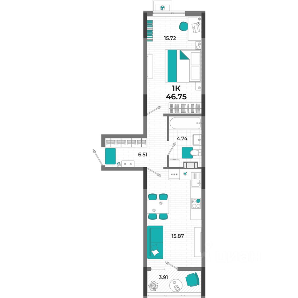 Общая площадь46,75 м2