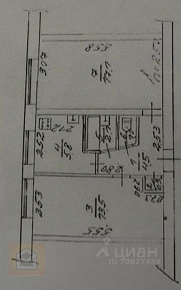 Основные характеристики: • общая площадь: 44,3 м2, • кухня: 5,8 м2, • комнаты: 13,5 м2 и 17,1 м2 (раздельные), • санузел: совмещённый, • отопление: газовый котёл (автономное), • окна: стеклопакеты.