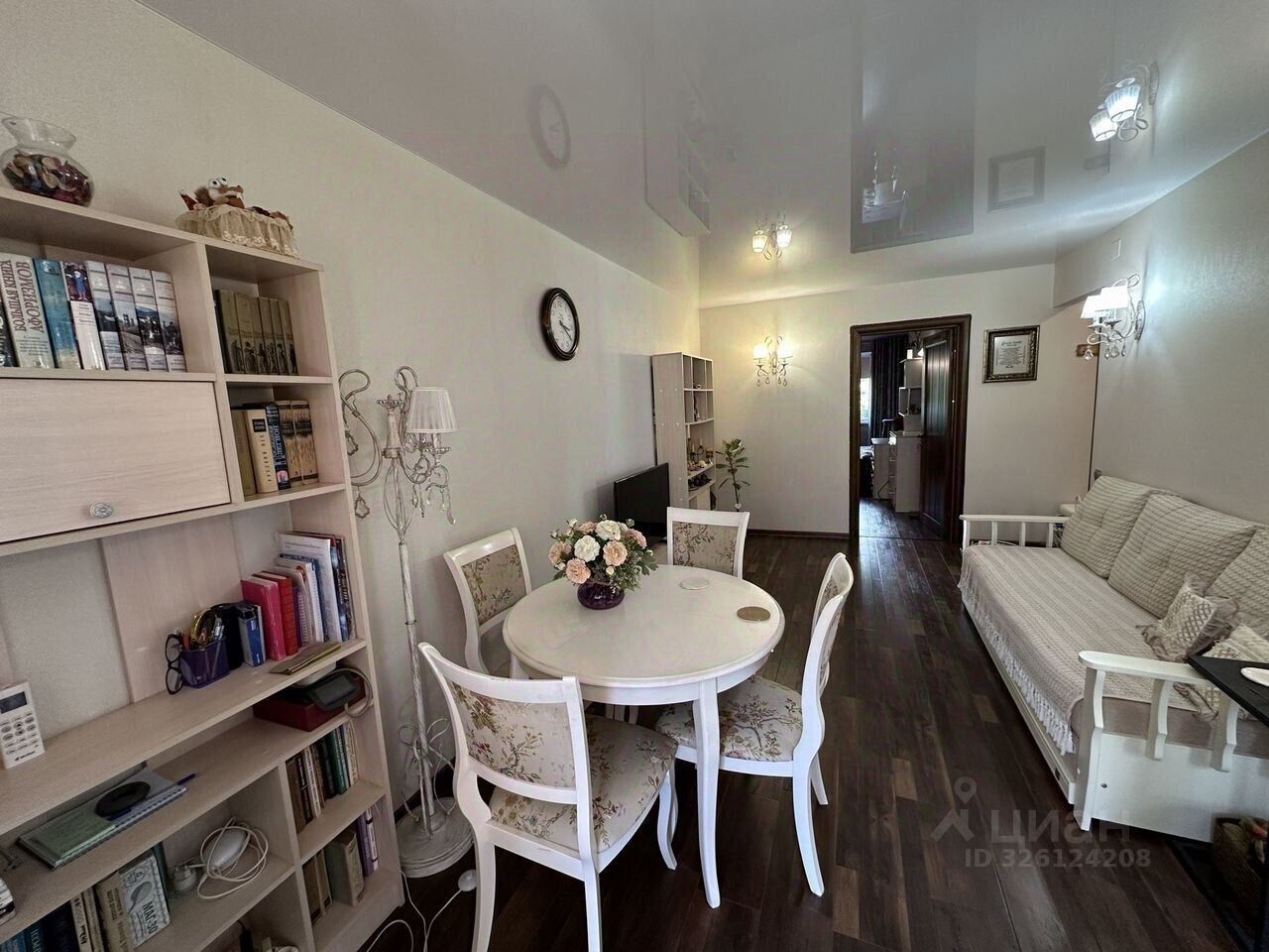 44 м² — две смежные комнаты, кухня, прихожая, совмещённый санузел и лоджия. Современный ремонт: тёплые полы (лоджия, ванна, спальня), кондиционер, газовая колонка, центральное отопление.