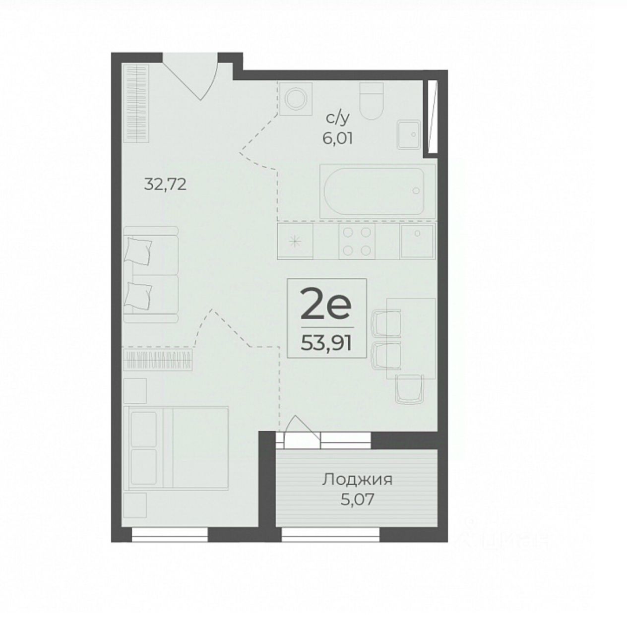 Общая площадь53,91 м2