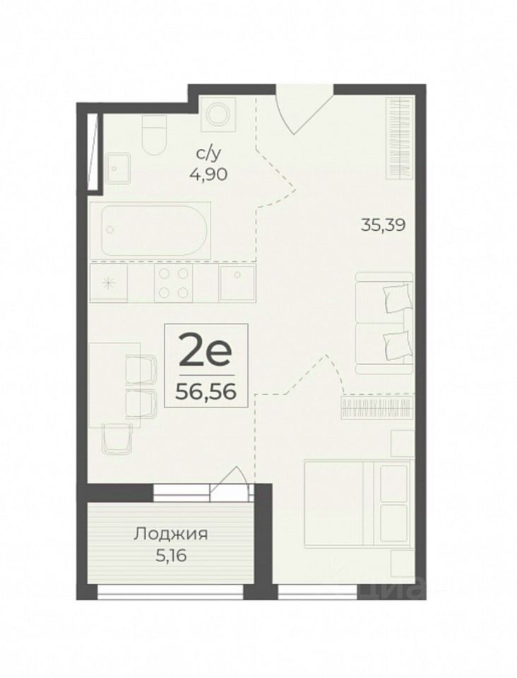 Общая площадь56,56 м2