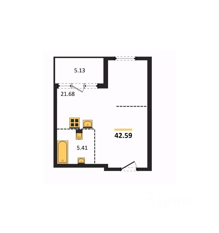 Общая площадь42,59 м2