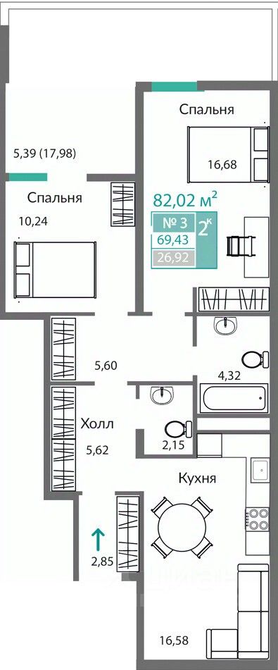 Продаётся 2-комнатная квартира в строящемся доме (11 этап (Секция А8)), срок сдачи: I-кв. 2027, общей площадью 69.43 кв.м., на 1 этаже. ОТКРЫВАЕМ НОВЫЕ ГОРИЗОНТЫ