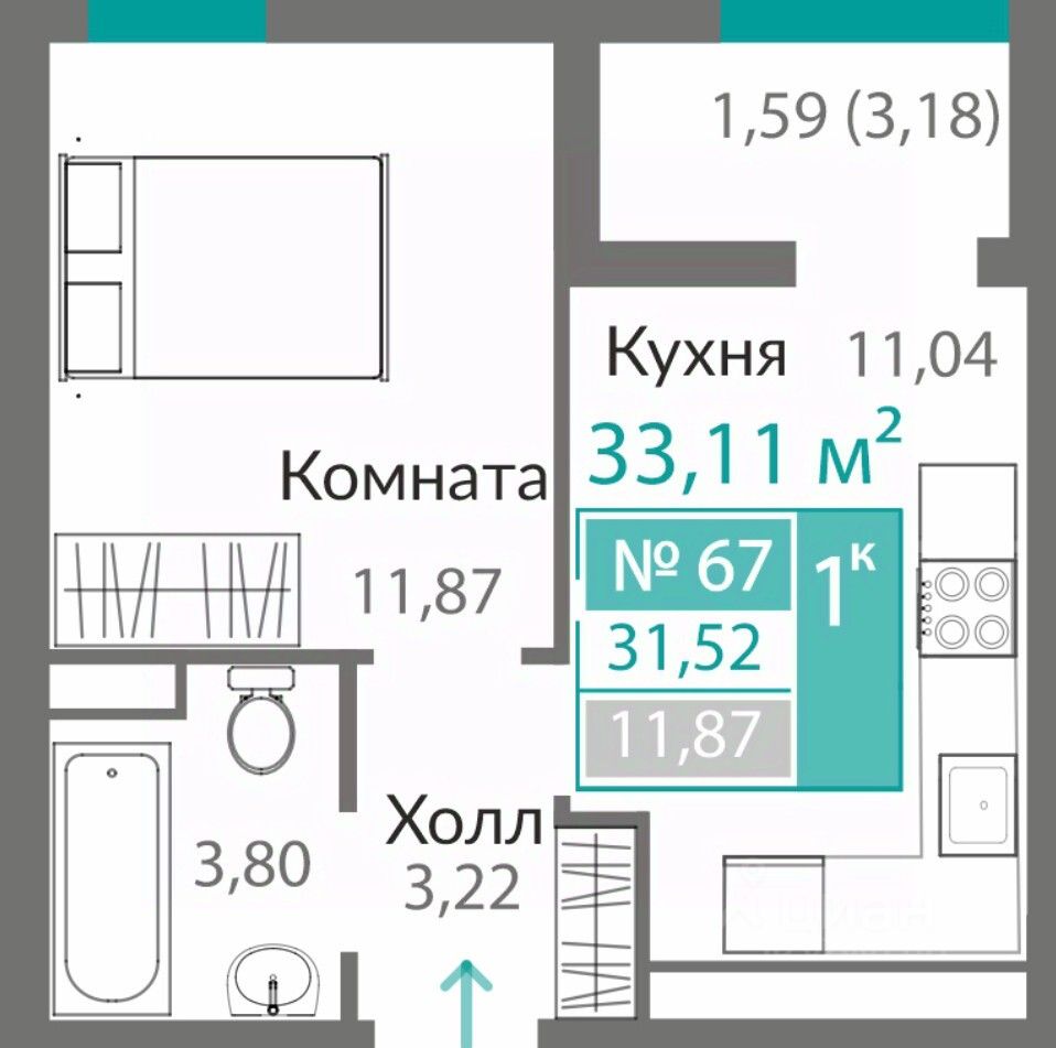 Продаётся 1-комнатная квартира в строящемся доме (11 этап (Секция А8)), срок сдачи: I-кв. 2027, общей площадью 31.52 кв.м., на 8 этаже. ОТКРЫВАЕМ НОВЫЕ ГОРИЗОНТЫ