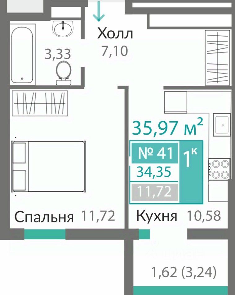 Продаётся 1-комнатная квартира в строящемся доме (13 этап (Секция Б8)), срок сдачи: I-кв. 2027, общей площадью 34.35 кв.м., на 6 этаже. ОТКРЫВАЕМ НОВЫЕ ГОРИЗОНТЫ