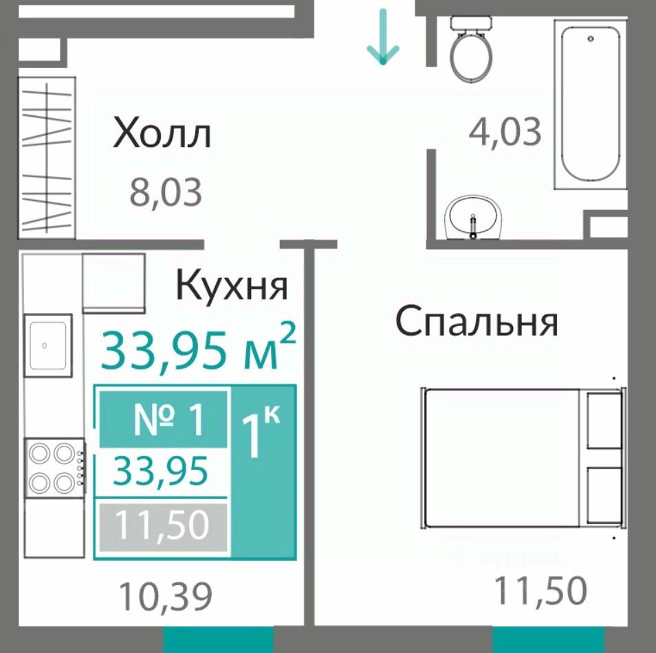 Продаётся 1-комнатная квартира в строящемся доме (11 этап (Секция А8)), срок сдачи: I-кв. 2027, общей площадью 33.95 кв.м., на 1 этаже. ОТКРЫВАЕМ НОВЫЕ ГОРИЗОНТЫ