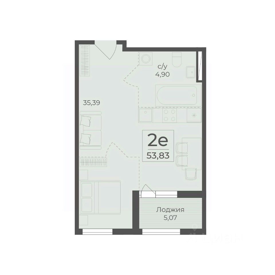 Общая площадь53,83 м2