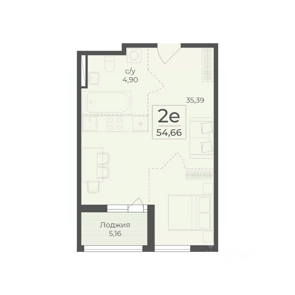 Общая площадь54,66 м2