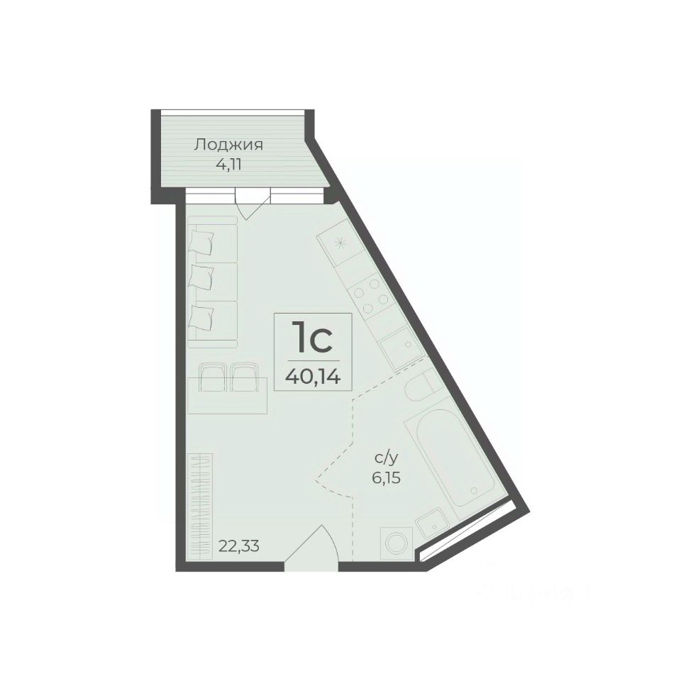 Общая площадь40,14 м2