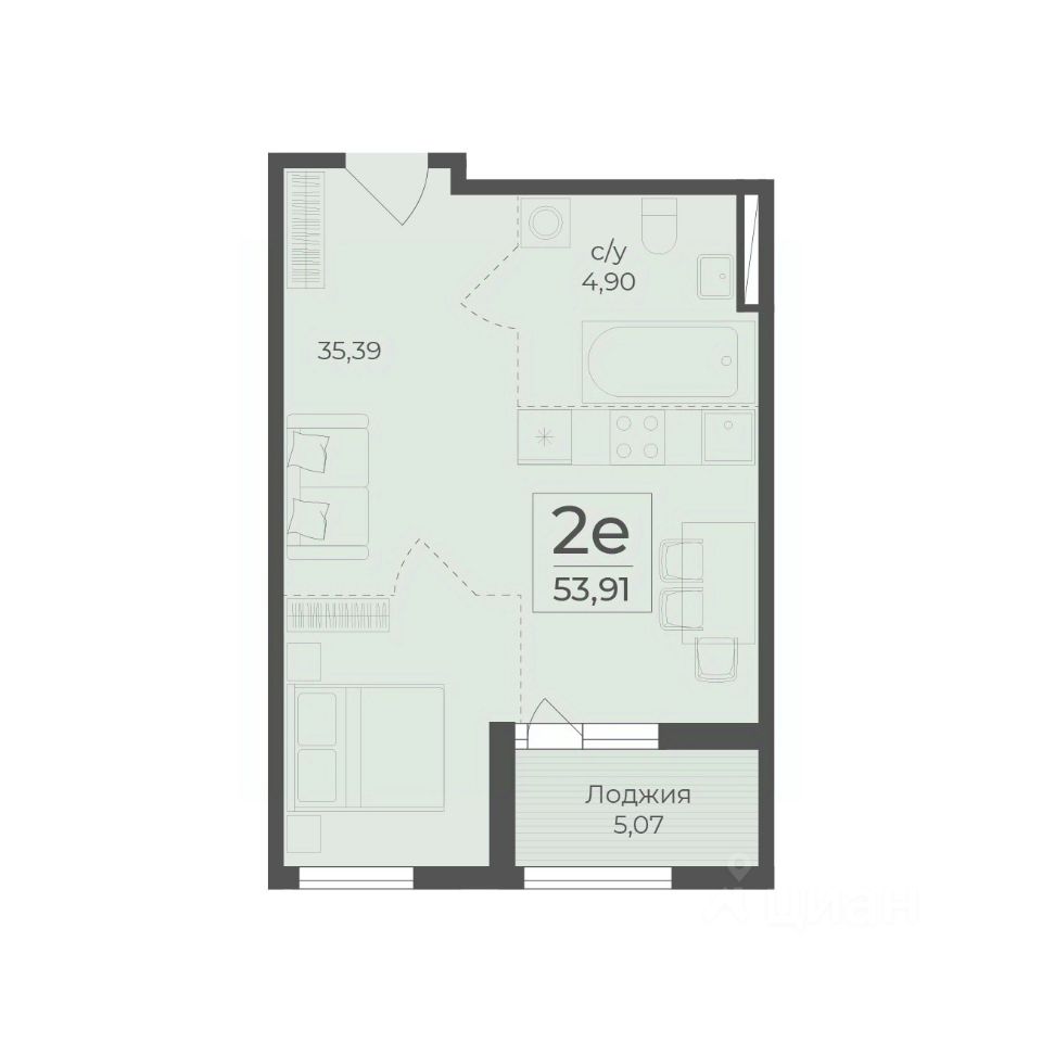 Общая площадь53,91 м2