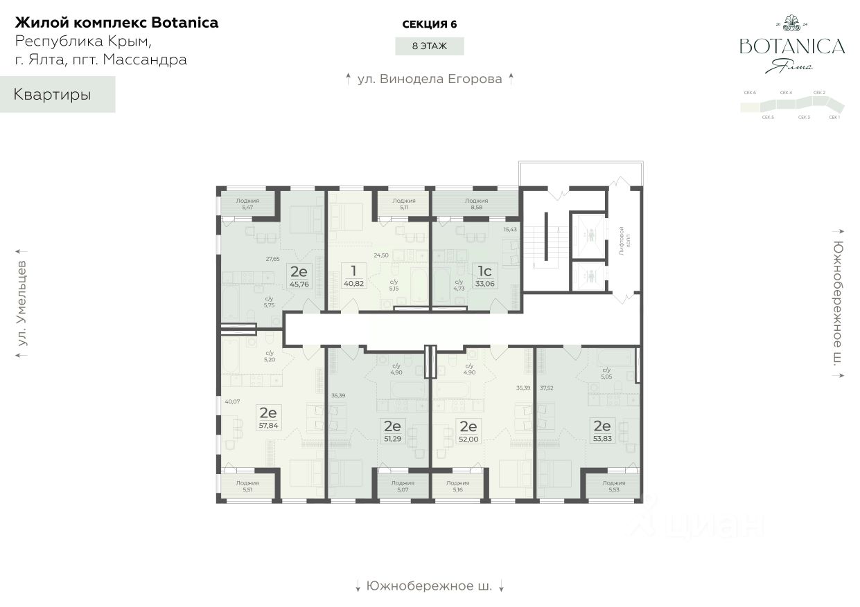 В жилом комплексе Botanica представлены квартиры свободной планировки, которые позволят владельцам реализовать самые смелые идеи. Такие планировочные решения подразумевают отсутствие жестких перегородок и стен и наличие панорамных окон с видами на море и горы, что открывает новые горизонты для креативного самовыражения и дает возможность создать просторный, эргономичный интерьер. До главных достопримечательностей Крыма, таких как ''Ласточкино гнездо'', Массандровский дворец, Никитский ботанический сад или Воронцовский дворец, можно добраться на пригородном автобусе или собственном автомобиле за 20-30 минут.