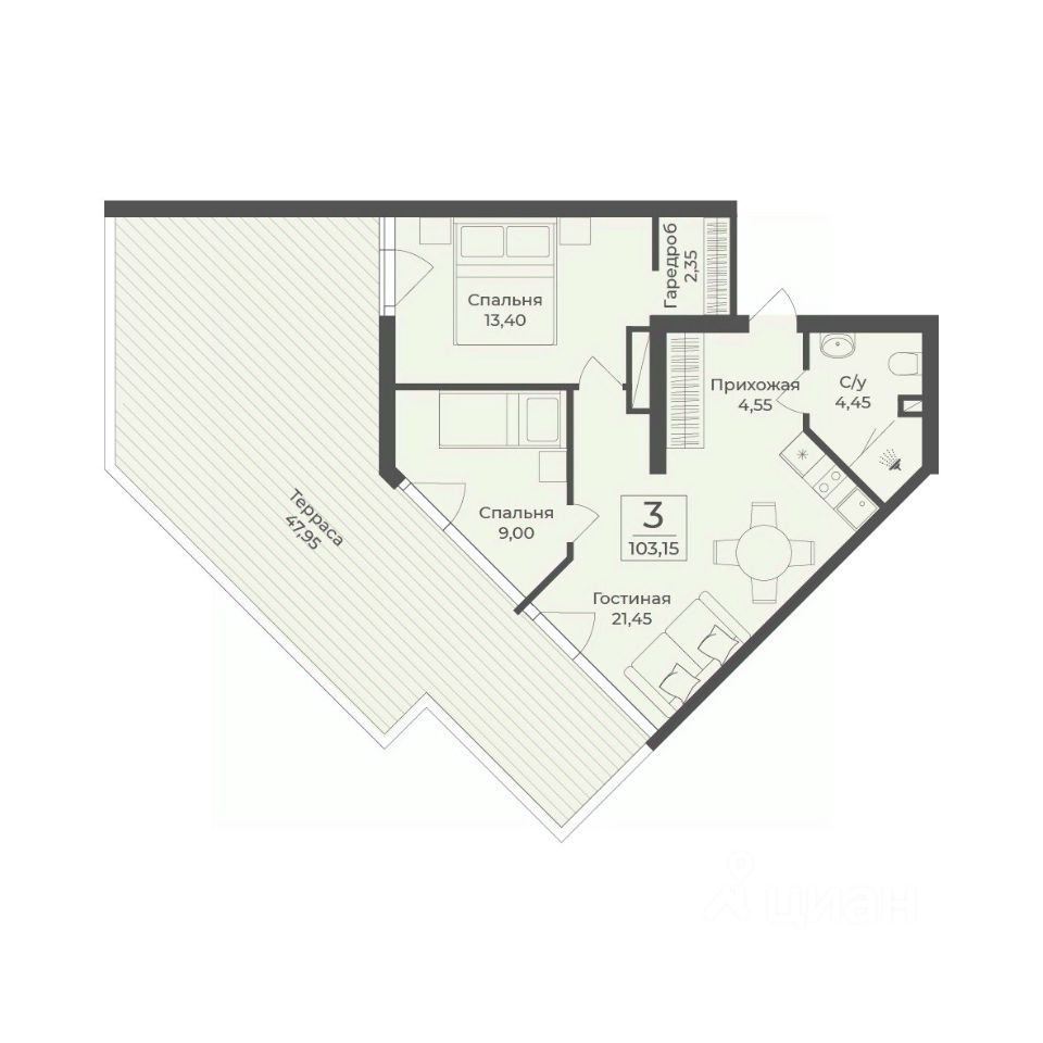 Продаются 3-комнатные апартаменты в строящемся доме (Этап 2 (Секции 1-3)), срок сдачи: II-кв. 2029, общей площадью 103.15 кв.м., на 8 этаже. ''Tamerun'' - морская резиденция на Западном берегу Крыма, между городами Евпатория и Саки.