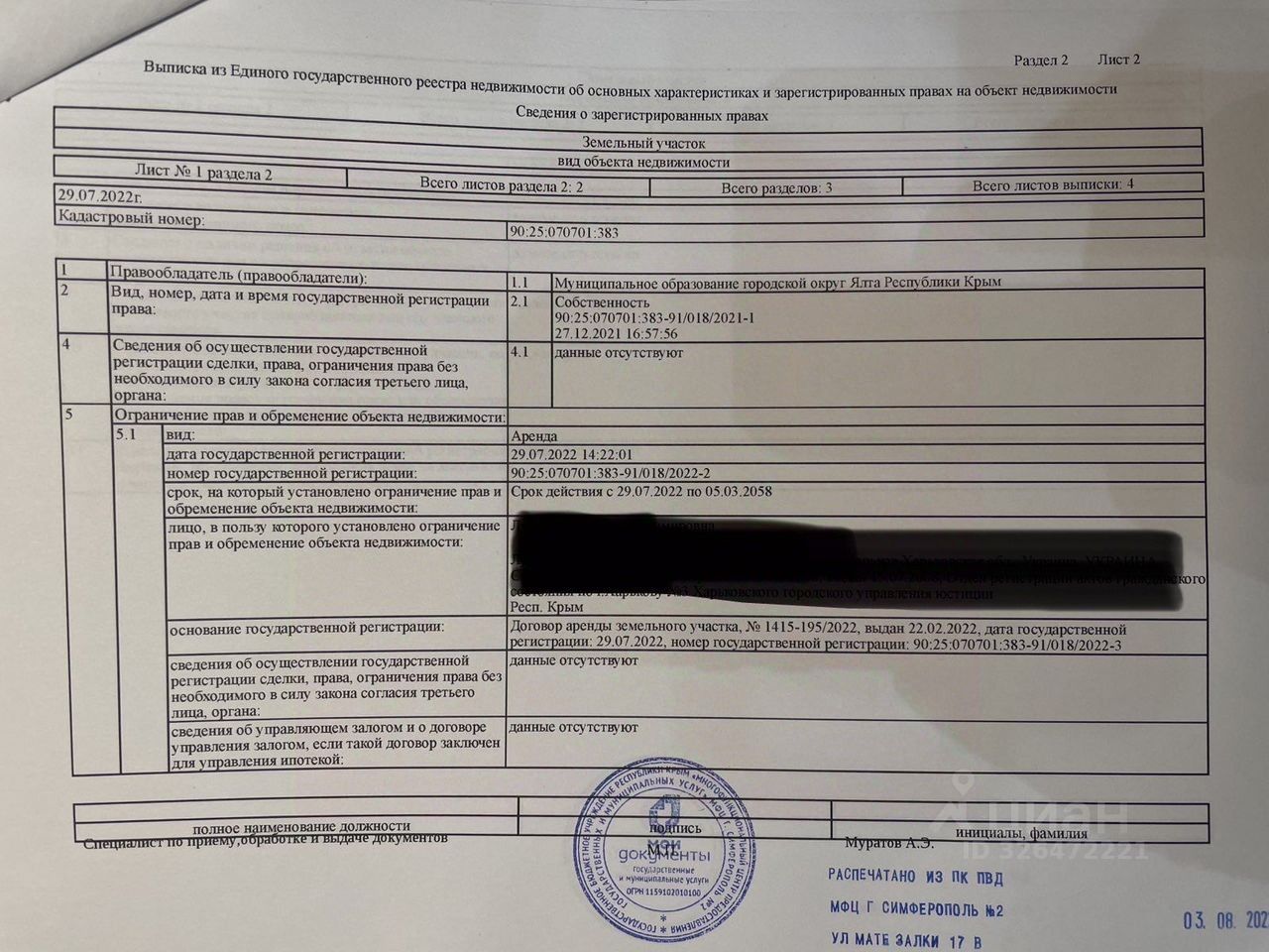 Продаётся три объекта капитального строительства(летний домик, гараж, техническое помещение)+ переуступка права аренды земельного участка до 2058 года с правом пролонгации и выкупа ( если нужно, могу помочь сделать выкуп). Земельный участок выделен под туристическое обслуживание. Возможно перевести в Ижс. Отличное место для постройки места туристического отдыха, гостиницы, либо нового направления зоны глэмпинга, участок находится на уровне 6 метров над уровнем моря, до центрального пляжа Береговое, 2-3 минуты пешком. Участок весь в зеленых насаждениях, достаточно ровный для Крымского побережья. Хорошие подъездные пути, дорогу с Южнобережной трассы Ялта-Севастополь до моря новую постелили. Так же могу ещё предложить рядом( практически смежные участки) 2 сотки земли (недострой баня, магазин), аренда до 2058 года с правом выкупа на котором расположен торговый павильон-магазин и Баня.