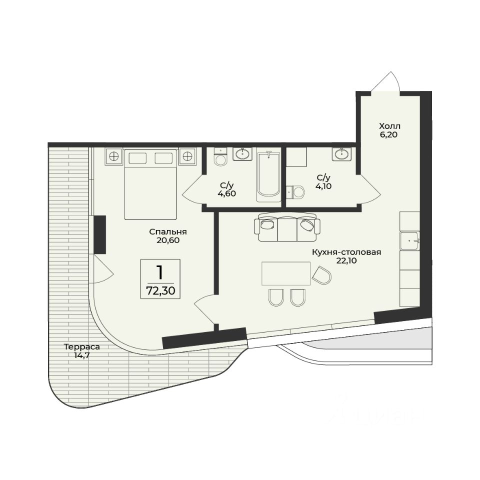 Продаётся 2-комнатная квартира в строящемся доме (Корпус 3), срок сдачи: III-кв. 2028, общей площадью 72.3 кв.м., на 3 этаже. Премиальный жилой комплекс ''Нега'' возводится в Профессорском уголке неподалёку от набережной, где снимался фильм ''Кавказская пленница''.