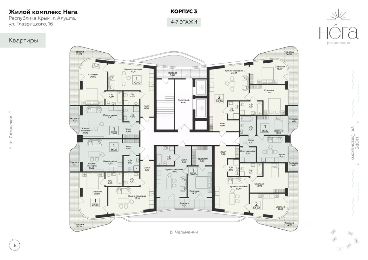 Продаётся 2-комнатная квартира в строящемся доме (Корпус 3), срок сдачи: III-кв. 2028, общей площадью 72.3 кв.м., на 7 этаже. Премиальный жилой комплекс ''Нега'' возводится в Профессорском уголке неподалёку от набережной, где снимался фильм ''Кавказская пленница''.