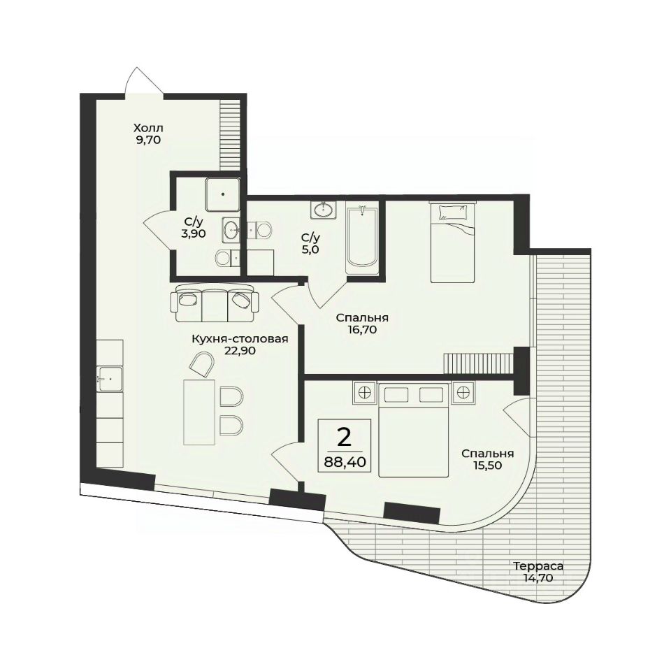 Продаётся 2-комнатная квартира в строящемся доме (Корпус 3), срок сдачи: III-кв. 2028, общей площадью 88.4 кв.м., на 5 этаже. Премиальный жилой комплекс ''Нега'' возводится в Профессорском уголке неподалёку от набережной, где снимался фильм ''Кавказская пленница''.