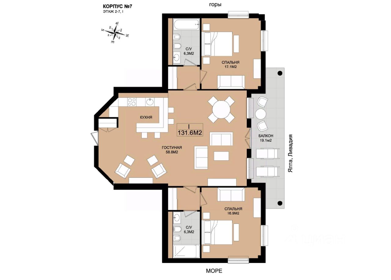 Продаются 3-комнатные апартаменты в премиальном комплексе Дипломат, корпус 7, этаж 5. Вид на море. Построен, сдан. С отделкой под ключ. На территории 3 открытых бассейна, ресторан, собственный СПА-центр с крытым бассейном, сауна, русская баня, хамам, тренажерный зал. До пляжа 500 метров по закрытой охраняемой территории соседнего санатория.