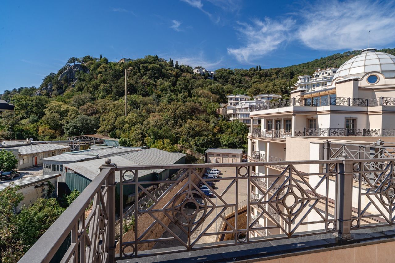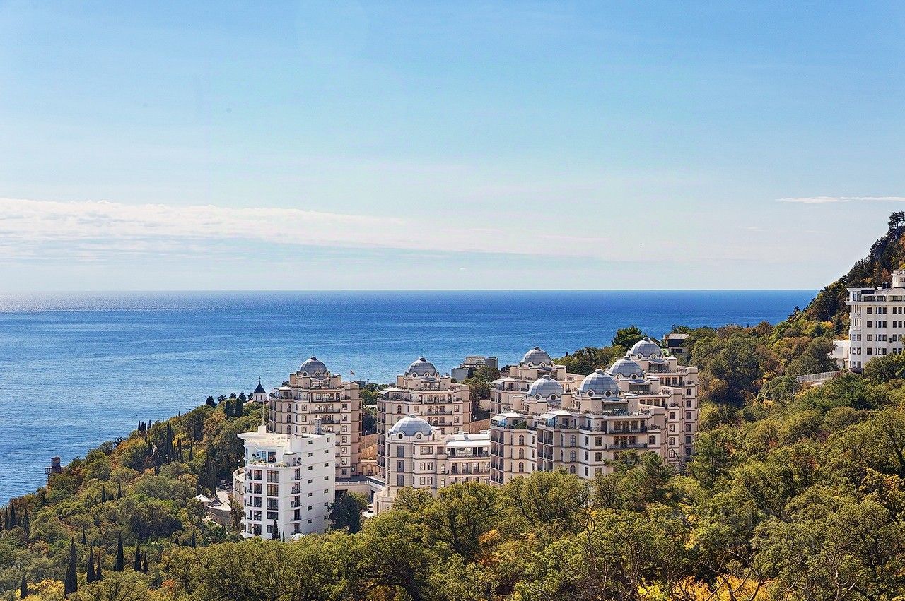 Роскошный 3-уровневый пентхаус без отделки в премиальном комплексе Дипломат, корпус 2. Панорамный вид на море, горы, Ореанду, Храм. Построен, сдан. Собственность, оформление по ДКП. Цена не окончательная, подлежит обсуждению. На территории 3 открытых бассейна, ресторан, собственный СПА-центр с крытым бассейном, сауна, русская баня, хамам, тренажерный зал. До пляжа 500 метров по закрытой охраняемой территории соседнего санатория.