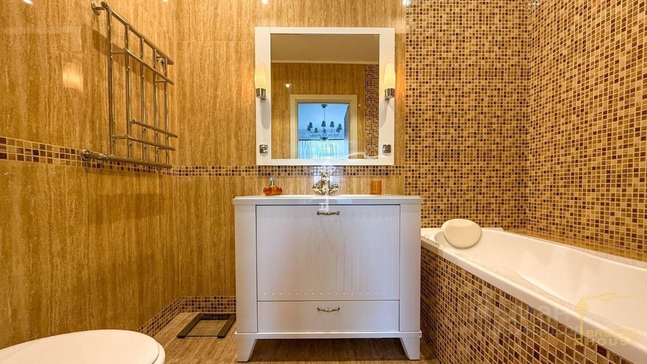 -Стены покрыты декоративной штукатуркой, пол — ламинат премиум-класса, -Вся мебель привезена из Италии, -Установлена сантехника GROHE, -В каждой комнате кондиционеры DAIKIN.