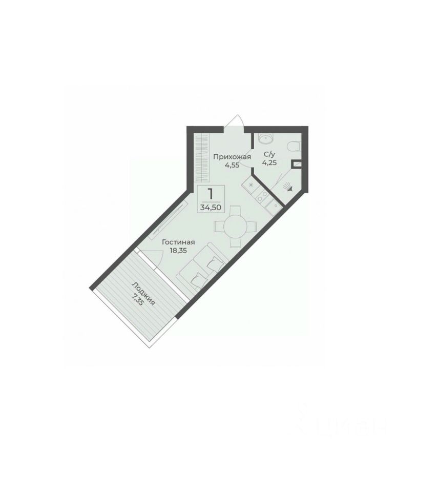Общая площадь34,5 м2