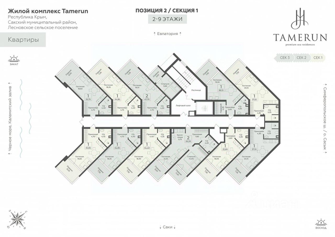 Резиденция ''Tamerun'' представляет собой современный комплекс из четырёх корпусов высотой 9 и 12 этажей, гармонично вписанных в живописный ландшафт. Интерьеры выполнены в изысканном элегантном стиле с применением премиальных материалов — натурального мрамора, ценных пород дерева и высококачественной кожи. Просторные помещения наполнены естественным светом благодаря большим панорамным окнам, открывающим завораживающие виды на Черное море. Атмосфера резиденции пропитана уютом и гармонией, создавая идеальные условия для комфортной жизни и отдыха.