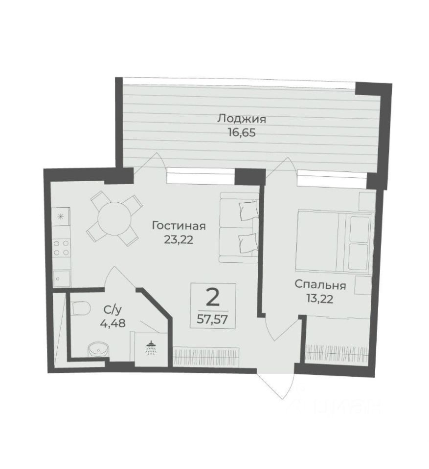 Общая площадь57,57 м2