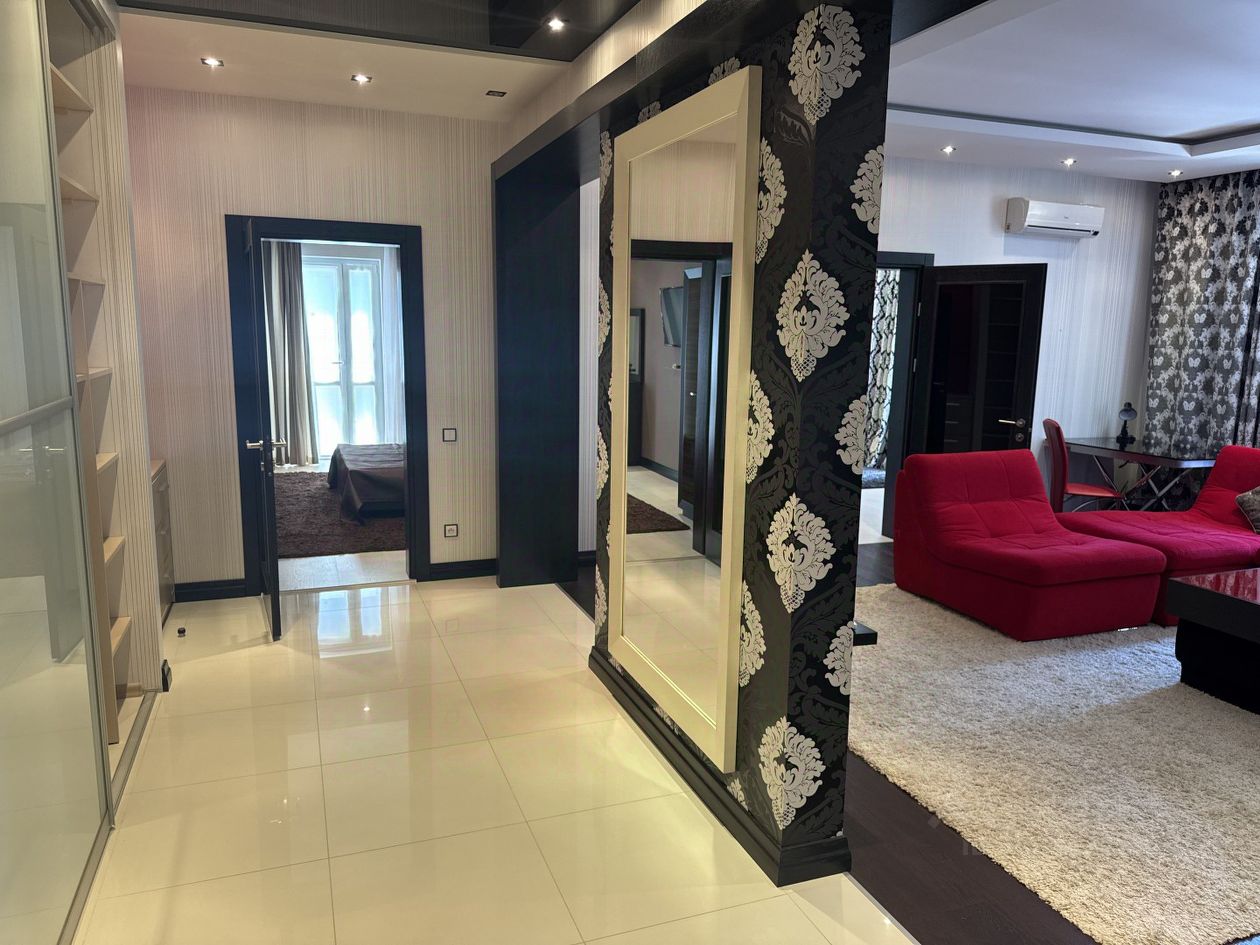 Дизайн и отделка: Квартира выполнена в уникальном стиле, который сочетает в себе страстную испанскую палитру красных и черных оттенков и спокойные, расслабляющие тона в спальнях. На полу — ламинат с мягкими коврами, создающими уют, а на кухне и в санузле — стильная плитка. Подвесные и натяжные потолки создают эффект зеркала и блеска, а продуманное освещение подчеркивает всё совершенство интерьера. Проводка новая, что обеспечивает вам безопасность и долговечность.