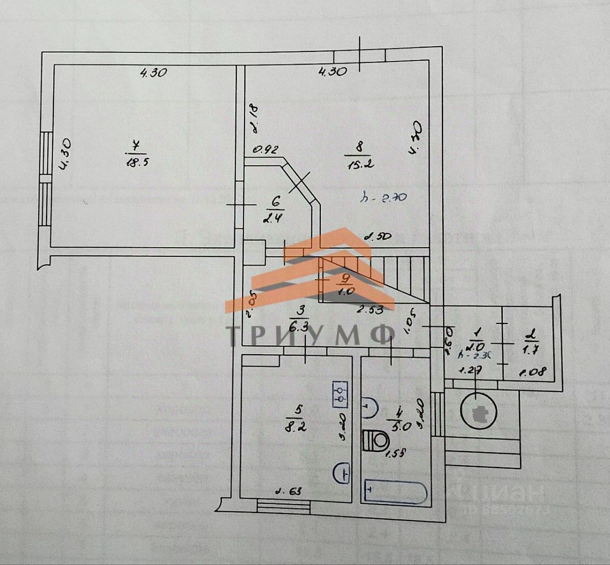 В квартире две изолированные комнаты 15,2 м2 и 18,5 м2 с высотой потолков 2,7 метра, дает дополнительное ощущение пространства. Большая кухня 8,2 м2, совмещенный просторный санузел 5,0 м2.
