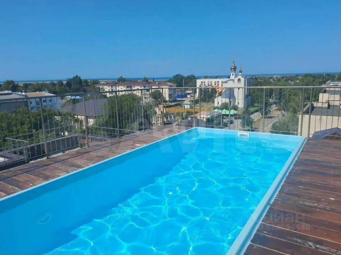 Хорошая входная дверь и металлопластиковые окна. Из окна красивый вид. В доме на крыше собственный бассейн, с шезлонгами, на крыше. Также на кровле зона отдыха с Wi-Fi и место для занятия йогой. В поселке есть все, что требуется для спокойного, размеренного отдыха или семейной жизни: общеобразовательная и музыкальная школы, детский сад, стадион, Дворец спорта, Дворец культуры, храм, поликлиника, аптечные пункты, магазины, рынок, куда фермеры привозят свою продукцию, работают кафе и бары на пляже. Пляж во Фрунзе протяженностью 2,5 километра. Летом ездят маршрутки. До автобусной остановки 50 метров. До города Саки 22 км,до города Симферополь 40км. Не упустите уникальную возможность приобрести достойное жилье у моря! Наша комиссия 79000 р.+1% от стоимости объекта, но не менее 70000 р.