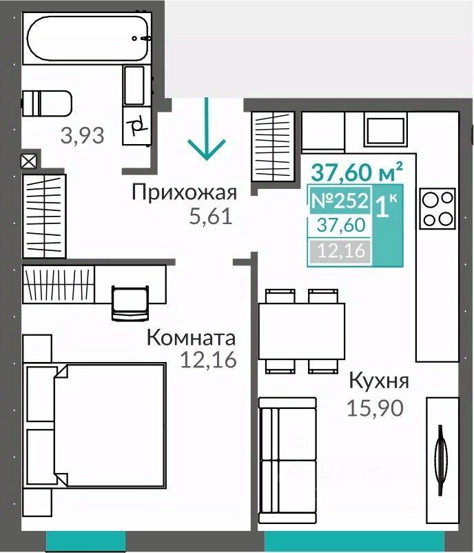 Общая площадь37,6 м2